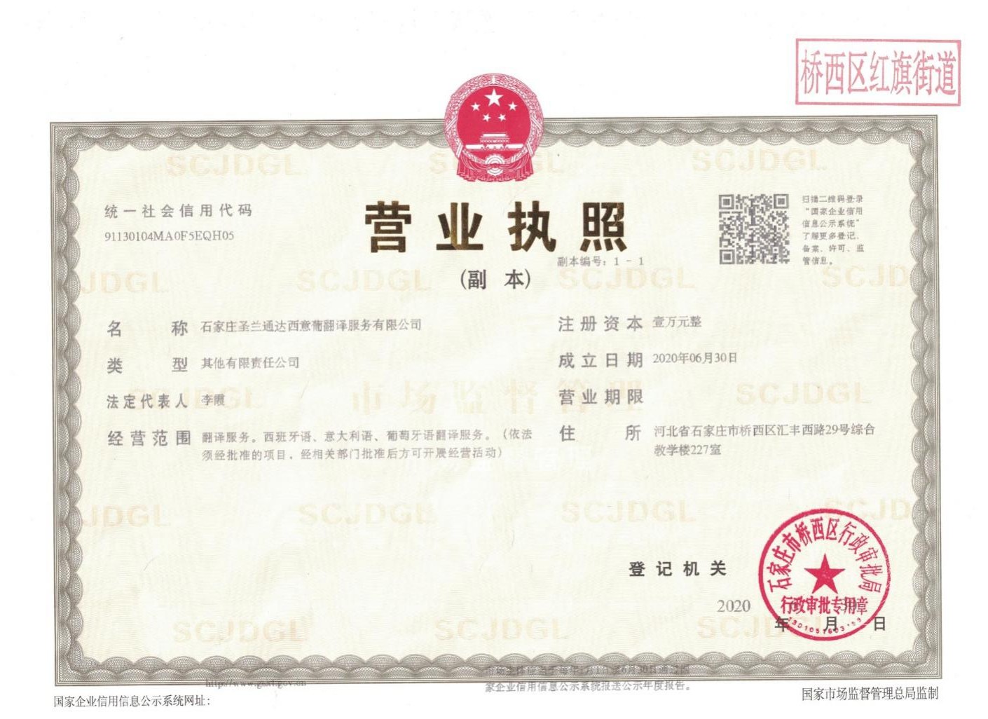 石家庄圣兰通达西意葡语言翻译服务有限公司成立于2020年,依托河北外国语学院西意葡语言学院雄厚的师资优势,秉承“信、达、雅”的翻译原则,遵照“以准为根,以快为本”的服务主旨,以专业外语翻译为优势,在医学、外贸、旅游等行业领域有丰富的翻译经验。公司拥有一支由资深翻译专家、外籍专家、自有译员、精英毕业生和在校生组成的优秀翻译团队。