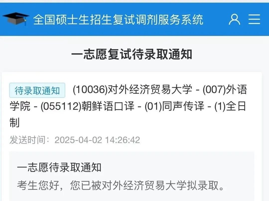 近日,喜讯传来,河北外国语学院朝鲜语专业学生丁佳美成功考取对外经济贸易大学朝鲜语口译硕士研究生,为个人学业生涯书写了浓墨重彩的一笔,也为学校争得了荣誉。
