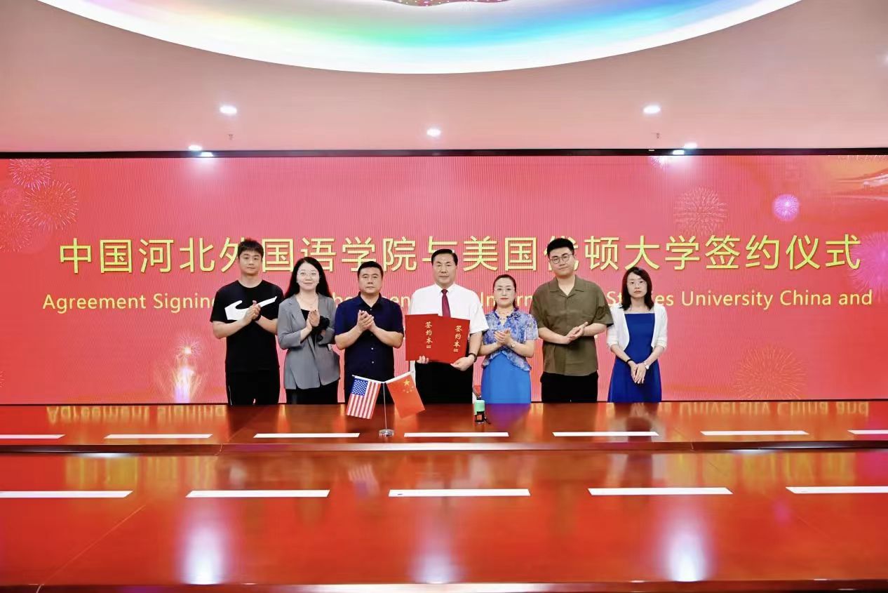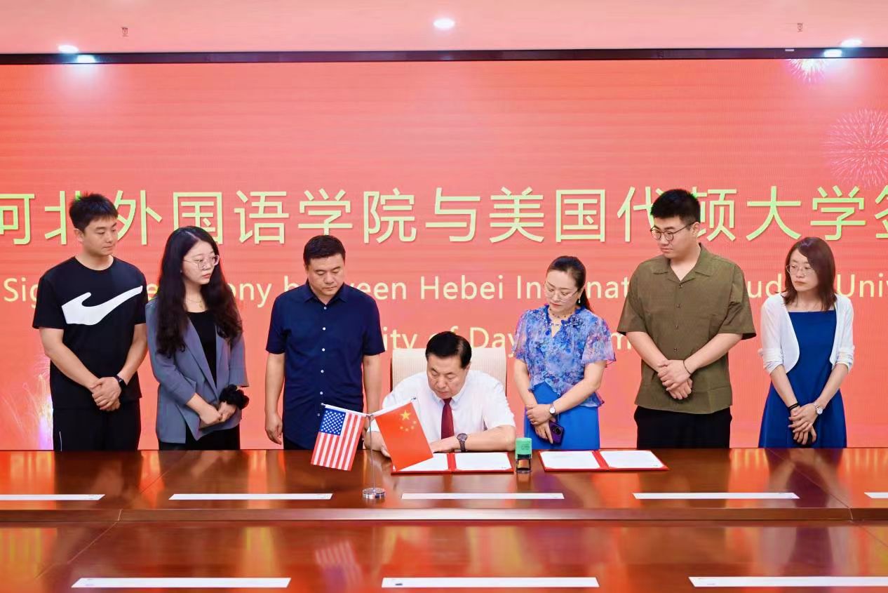近日,河北外国语学院与美国代顿大学举行了隆重的签约仪式。双方正式建立合作关系,为推动中美教育交流与人才培养搭建重要平台。河北外国语学院董事长、校长孙建忠院士代表校方签署合作协议,外事副校长陈伟、国际航空旅游学院行政院长姚佳、业务院长李冬颖、三级院长刘立强、纪施莹、教研室主任兼外事拓展教师孙剑等共同见证这一重要时刻。