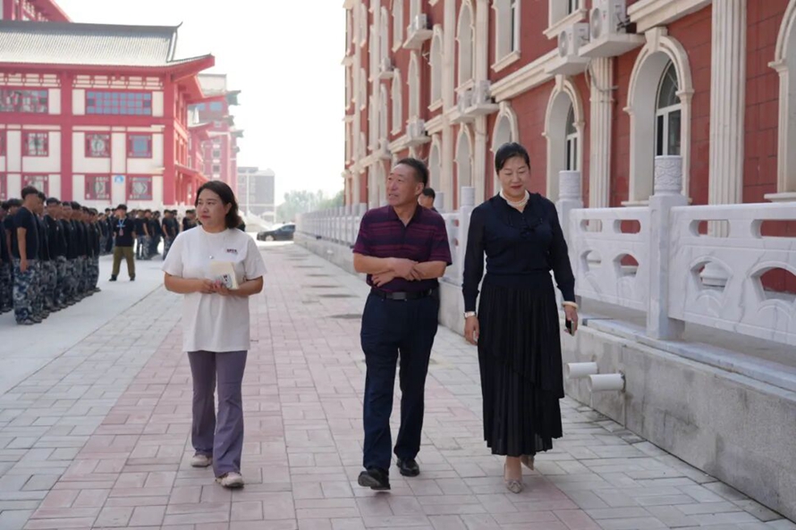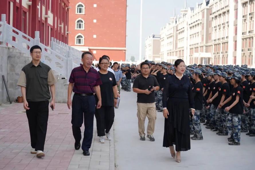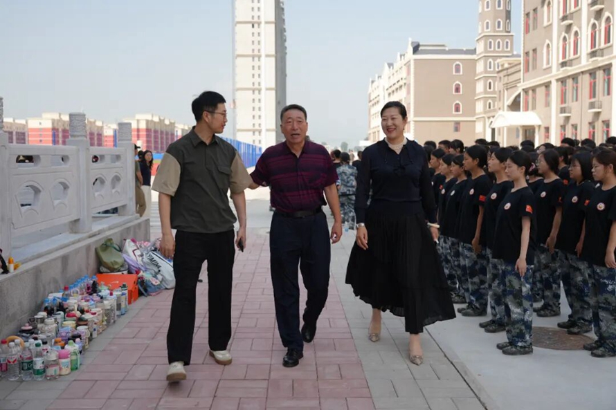 上午9时,学校党委书记朱爱深入军训连队,逐一走访各训练方阵。他驻足观看学生分列式训练,与辅导员亲切交谈,详细询问学生适应情况,并亲自为教师送上节日祝福。“军训是大学生活的第一课,感谢全体教师的辛勤付出,你们用汗水浇灌了新生的第一份集体荣誉感。”朱爱书记的讲话让在场教师倍感温暖。
