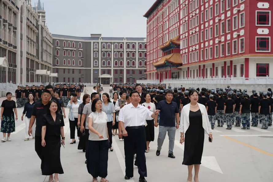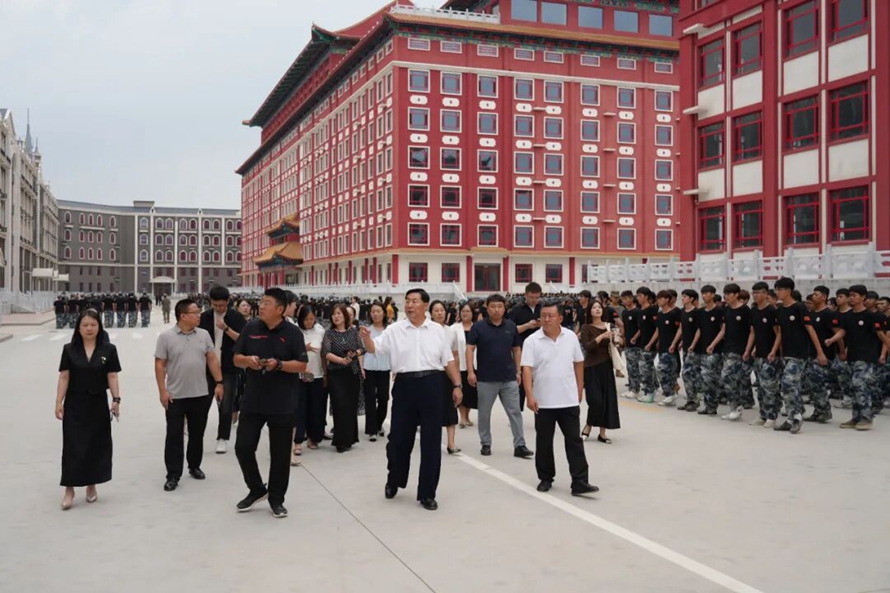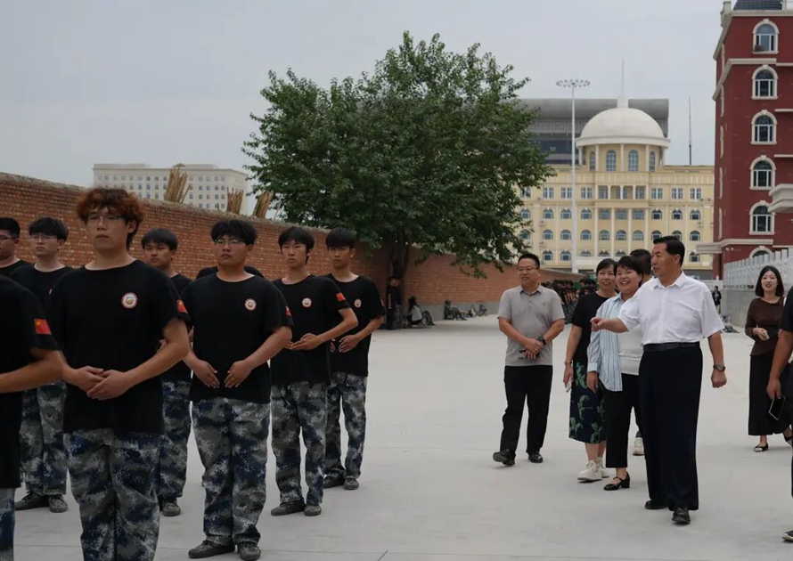 9月12日上午,阳光正好,河北外国语学院的校园里,2025级新生军训正如火如荼地进行着。在这关键时刻,学校董事长、校长孙建忠院士带领校领导班子成员及相关处室领导,亲临军训现场,深入80个军训方队,为正在挥洒汗水、磨砺意志的新生们送去了关怀与指导。学校党委委员、副校长、军训工作副指挥官陈乐音全程陪同,并汇报新生军训工作的相关情况。