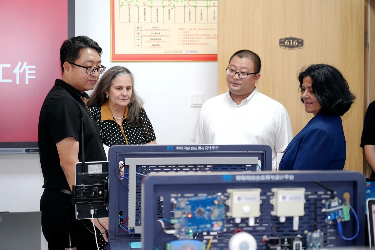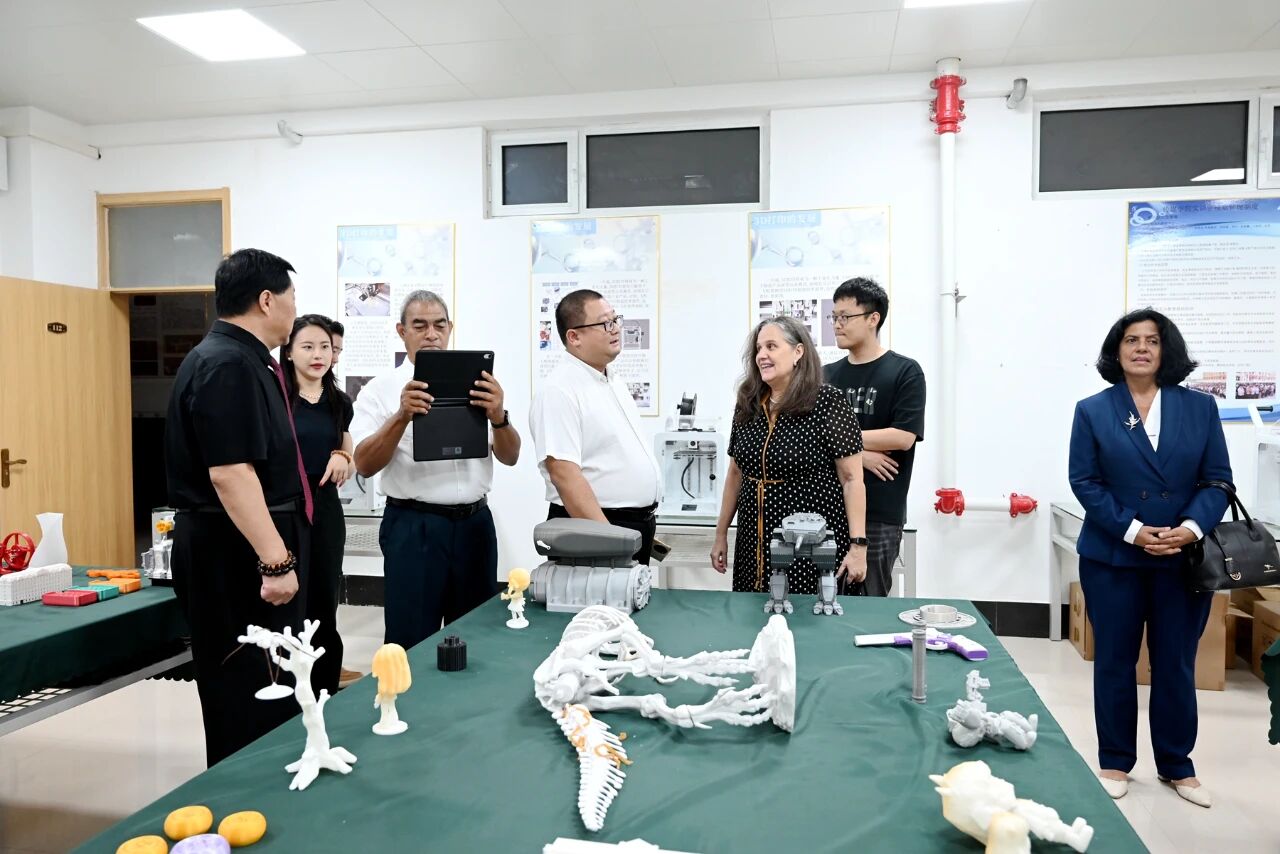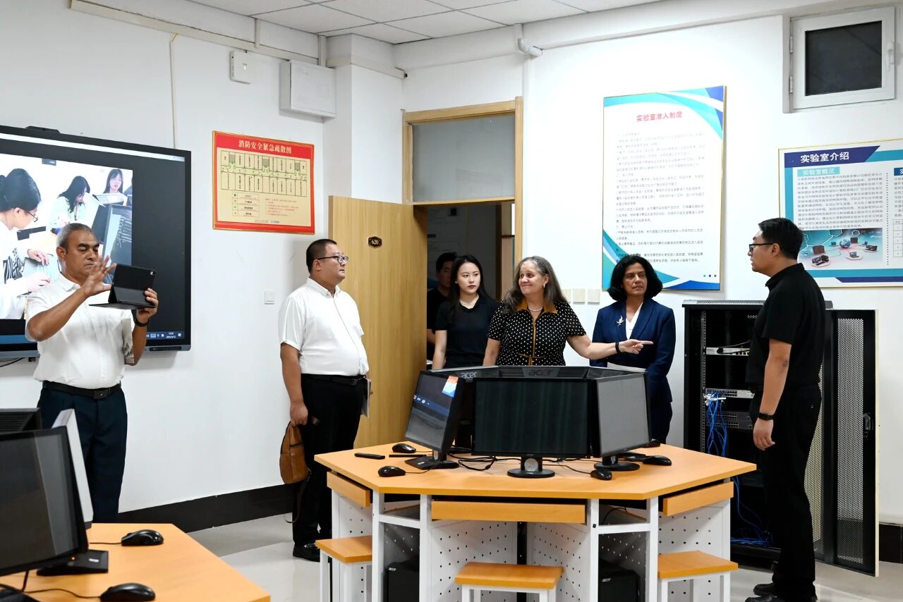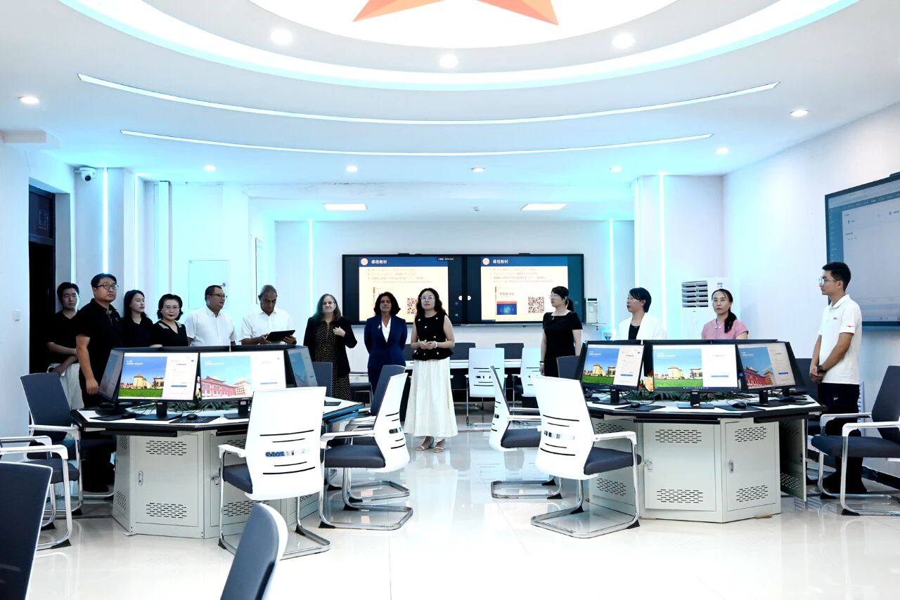 2025年9月15日—17日,古巴国家和政府干部高等学院校长梅德赛德斯·德尔加多·费尔南德斯、第一副校长阿娜及信息化处处长何塞一行到访河北外国语学院,开展深度的人工智能赋能学校管理科研、教育教学等方面的交流与合作洽谈。河北外国语学院董事长、校长孙建忠院士率队热情接待,校长外事助理、副校长杨振全程陪同。