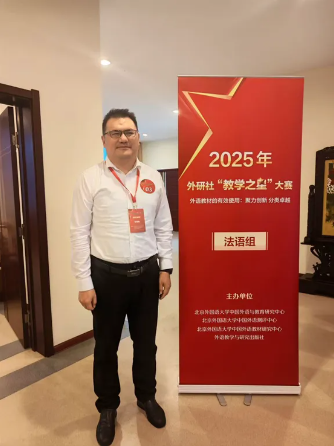 近日,2025 年外研社 “教学之星” 大赛法语组全国总决赛落下帷幕。河北外国语学院德法语言学院业务院长王利峰凭借扎实的专业功底与创新的教学设计,从全国晋级总决赛的 11 名优秀法语教师中脱颖而出,荣获全国三等奖,为学校赢得荣誉,也展现了河外法语教学的过硬实力。