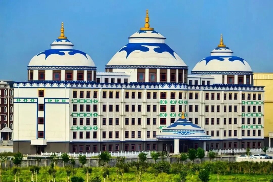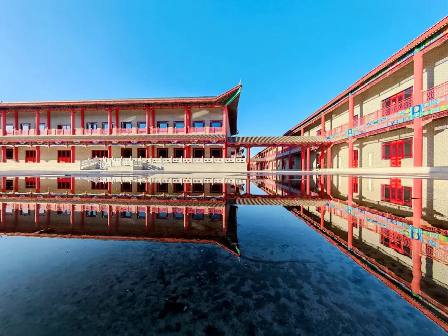 校园里的民族团结楼以其独特的建筑风格惊艳众人。穹顶融入蒙古包元素,蓝白配色灵动雅致,金色尖顶添了份庄重,把民族文化与现代美学揉得恰到好处。它不仅是地标,更藏着民族团结的心意。