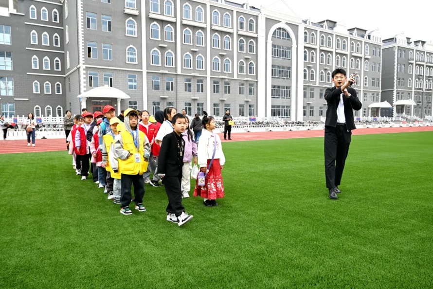 活动结束后,孩子们排着整齐的列队,齐声喊出“燕都小记者,成长我最棒!”的口号,稚嫩的童声在河北外国语学院校园中回荡。