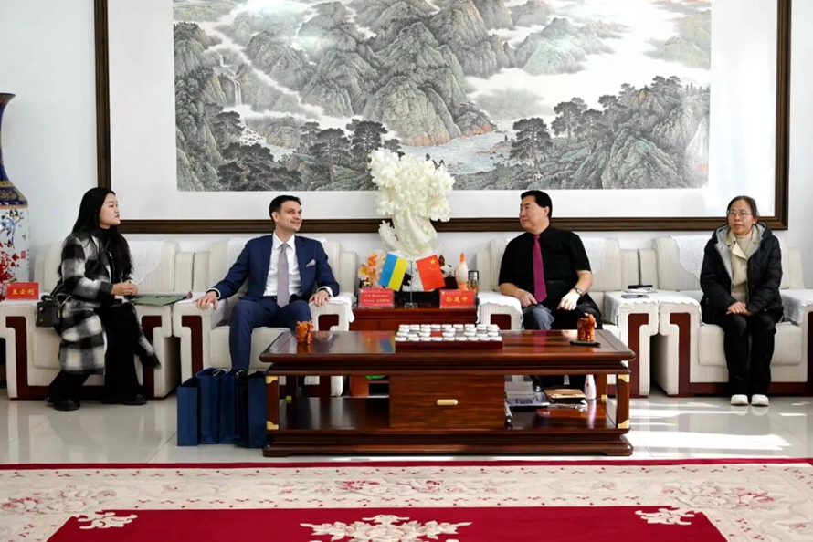 2025年11月21日,乌克兰驻华大使馆特命全权大使亚历山大·涅奇塔伊洛、二等秘书杰尼斯·梅尔兹溜克一行到访河北外国语学院。河北外国语学院董事长、校长孙建忠院士热情接待代表团,双方就深化教育文化交流合作展开深入交流。