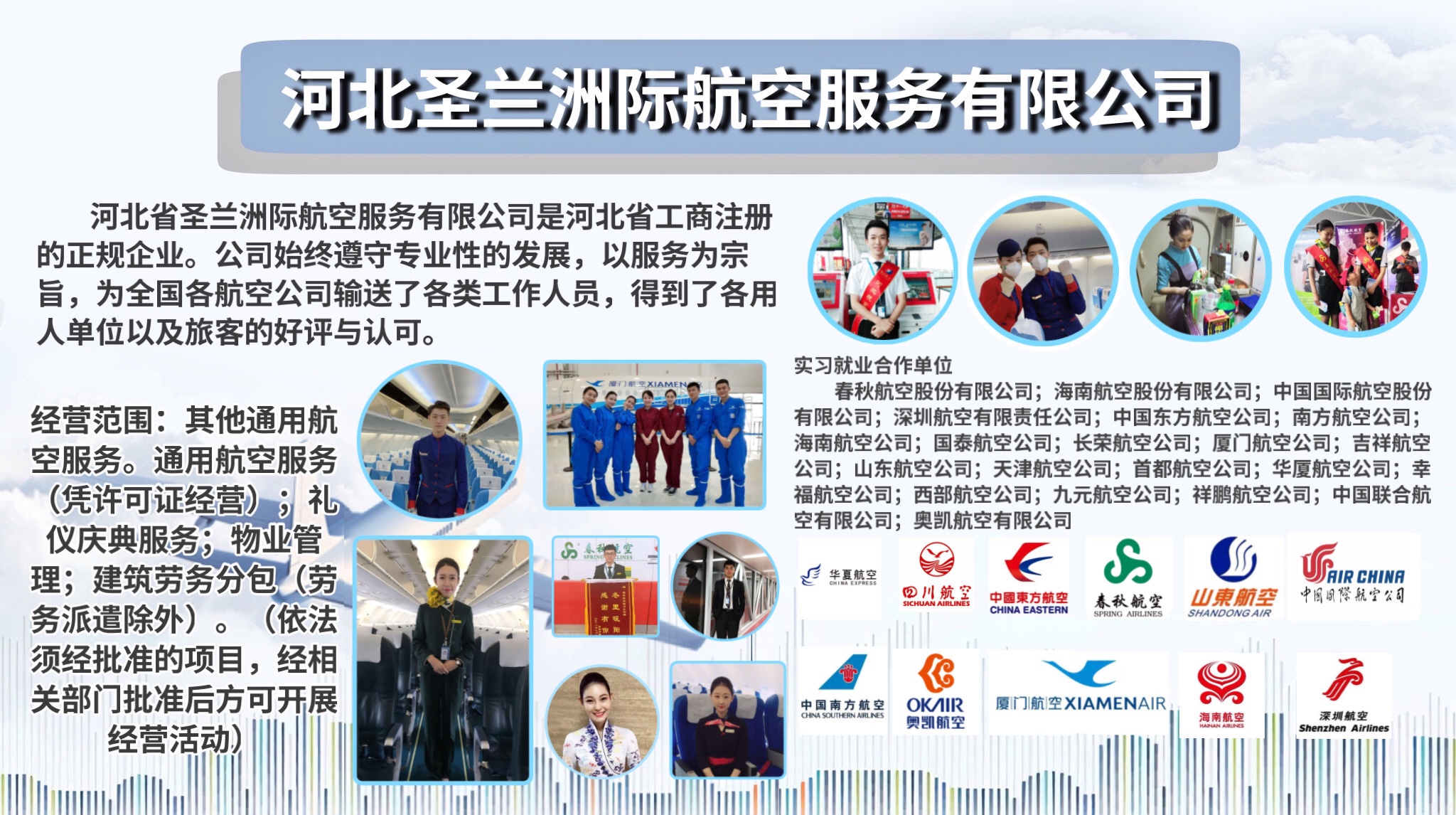 河北外国语学院以空中乘务专业为依托,成立了石家庄圣兰洲际航空服务有限公司。有雄厚的人才保障、设备保障、资源保障、场地保障等。