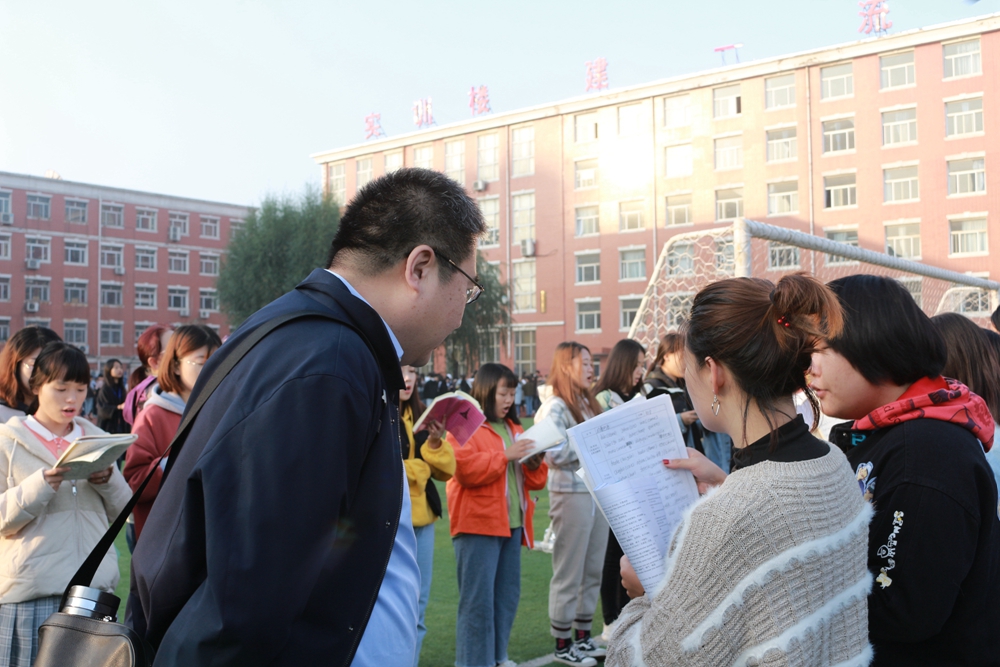 清晨,在河北外国语学院董事长、校长孙建忠教授,副校长陈乐音书记的陪同和带领下,张家口市第六中学校长一行参观了河北外国语学院独具特色的“万人西点式晨读”。