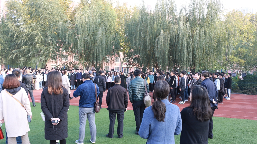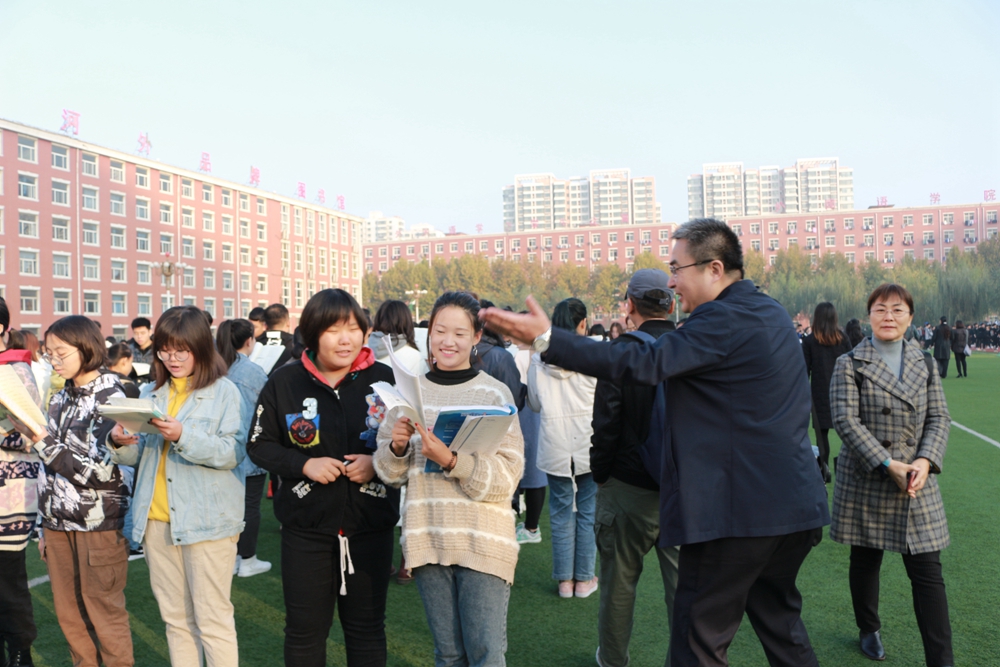 前来参观的张家口市第六中学校长、书记、教师被这万人大声齐读的场面震撼了,他们纷纷为河外点赞,为河外能够集中学生全身心投入外语学习中点赞,为河外能将西点式口语训练军团坚持十余年点赞。