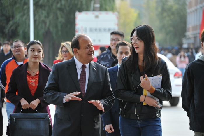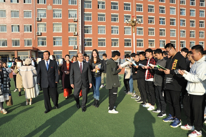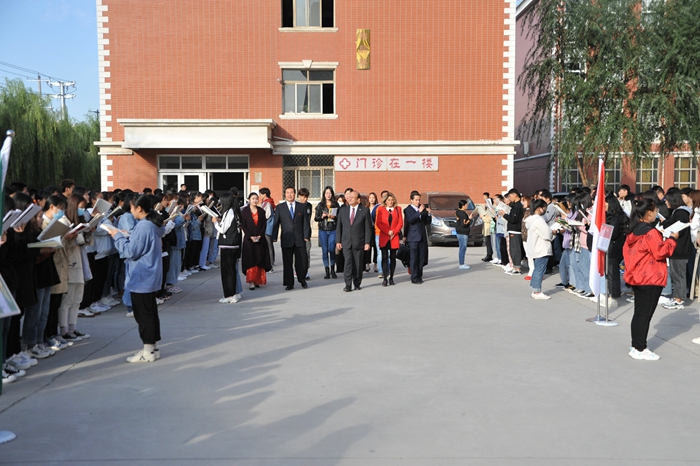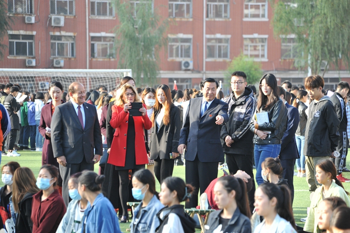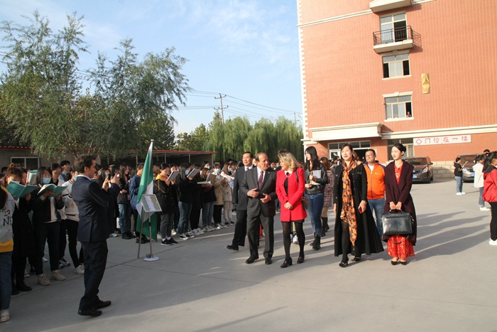 早上8时左右,在河北外国语学院董事长、校长孙建忠院士,副校长陈乐音,校长外事助理、副校长杨振博士、副校长陈伟等领导的陪同下,大使先生一行参观了河北外国语学院独具特色、坚持了10余年的西点式口语训练军团。