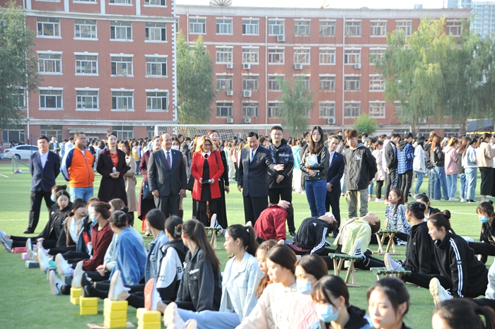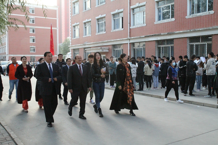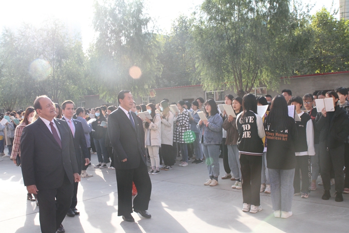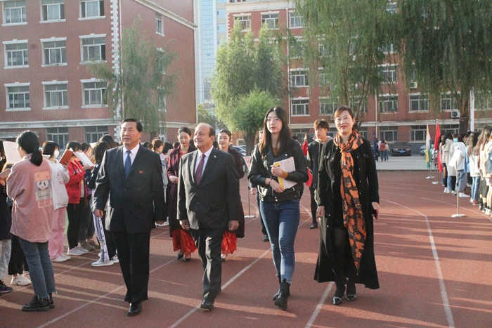 2万余名同学在学校的各个角落全站立、全开口、全外语朗读,大使先生一行被这壮观的场面震撼了,他们拿出手机拍下亲眼所见的这宏大的壮观场面。