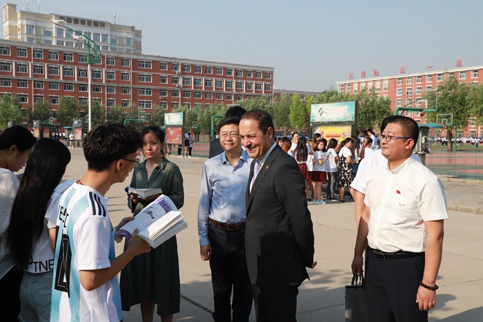 路易斯·蒙萨尔韦先生表示,他曾经在哥伦比亚当过3年的大学教师,但是像河北外国语学院这样万人齐学的晨读场景,他是闻所未见的,甚至在整个中国他也是第一次见到,这充分彰显出河外井井有条的教学秩序,也显示出河外浓厚的学习氛围。