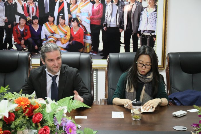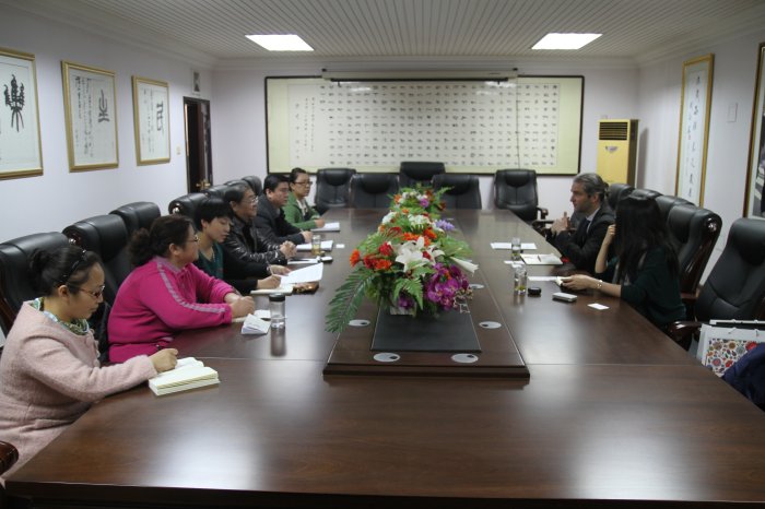 再次,欧亚语言学院业务院长吕曼忆就波兰语情景实训室的建设,向梅西亚先生做了简单介绍,希望波兰使馆能够协助我校建一个能充分体现波兰文化、蕴含波兰气息的情景实训室。梅西亚先生说他在波兰担任孔子学院院长时,也建立过类似的中国文化室,所以,协助我校建立波兰语情景实训室会给予全方位的支持,文化专员赵玥女士还表示会帮我们建立一个特色鲜明、与众不同的实训室。