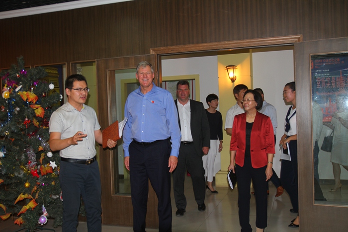 新不伦瑞克省访问团还参观了河北外国语学院的多语种情境实训室以及大学生活动中心。在参观法语情境实训室时,副省长一行与正在上课的学生用法语进行了友好、热情的交流,详细询问了他们的学习情况,并向他们介绍了新不伦瑞克省的文化等信息,霍斯曼副省长对情景实训室这一教学模式表示了充分肯定。在大学生活动中心,副省长一行观看了河北外国语学院师生精心准备的歌舞表演。