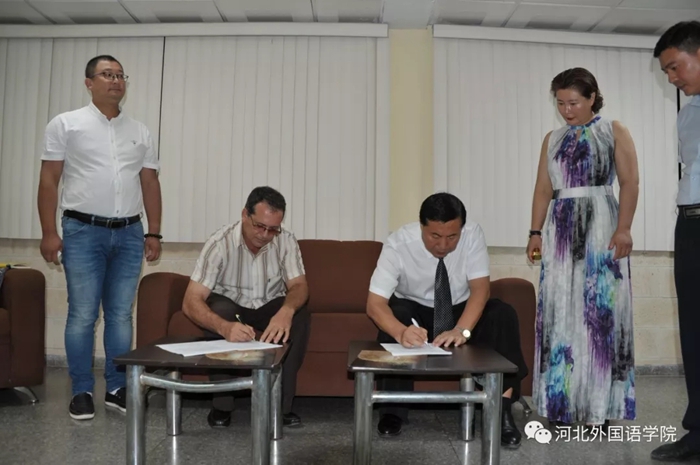 在原古巴共产党中央委员会委员、高等教育部部长胡安·维拉·巴尔德斯博士、古巴公共卫生部前部长佩德罗博士、河北外国语学院教育代表团、国家公共卫生学院、卡马圭大学领导们的见证下。河北外国语学院董事长、校长孙建中教授与国家公共卫生学院副院长巴布洛·莱昂·卡普勒拉博士成功签订《国际合作意向书》,加强医学高等教育合作,协同共建“国际友好医院”。