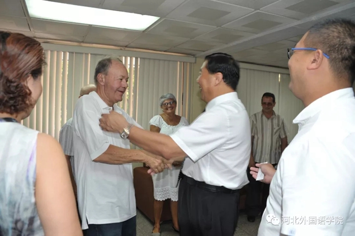 原古巴共产党中央委员会委员、高等教育部部长胡安·维拉·巴尔德斯博士专程到国家公共卫生学院与河北外国语学院孙建中校长见面