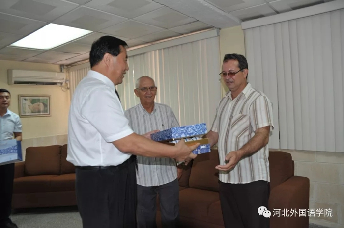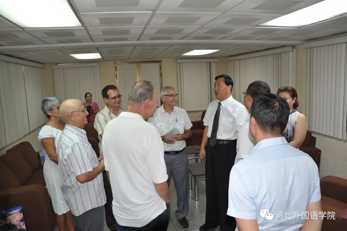 随后,河北外国语学院董事长、校长孙建中教授简要介绍了河北外国语学院发展情况,并表示,河北外国语学院本次古巴访问,重要的成果就是与奥尔金医科大学、卡马圭医科大学等古巴全国一流的医科大学及其附属医院合作在河北外国语学院新校区联合建设“国际友好医院”。今天,河北外国语学院与古巴医学硕士、博士人才培养排名第一的国家公共卫生学院合作,更加有助于“国际友好医院”引进古巴高端科研人才、医疗人才、医学教学人才,将古巴高端的医疗技术、生物制药技术及疾病防控技术引入“国际友好医院”。