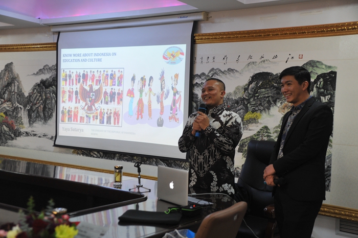 此外,教育参赞苏亚德先生还为我校印尼语专业的同学进行了讲座,详细介绍了印度尼西亚的地理情况、风土人情、社会文化等。其生动而活跃的讲座受到了学生的热烈欢迎。