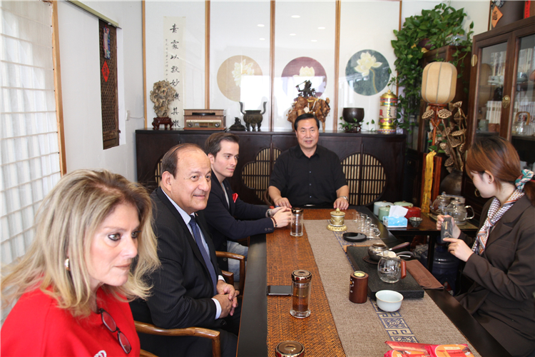在田野工作室,孙校长亲自为大使先生一行讲解中国茶文化,并邀请他们品味中国茶。