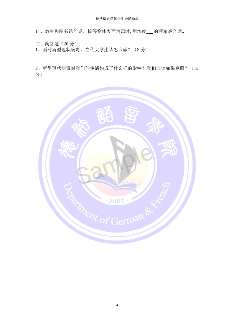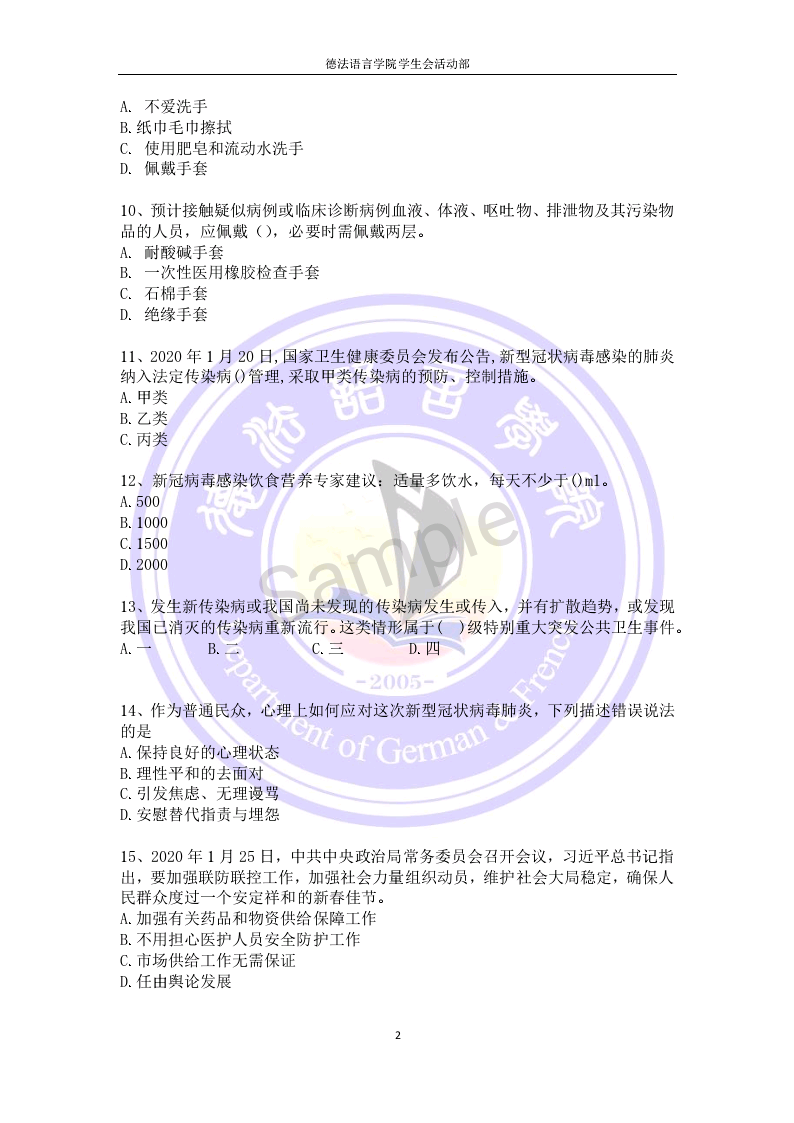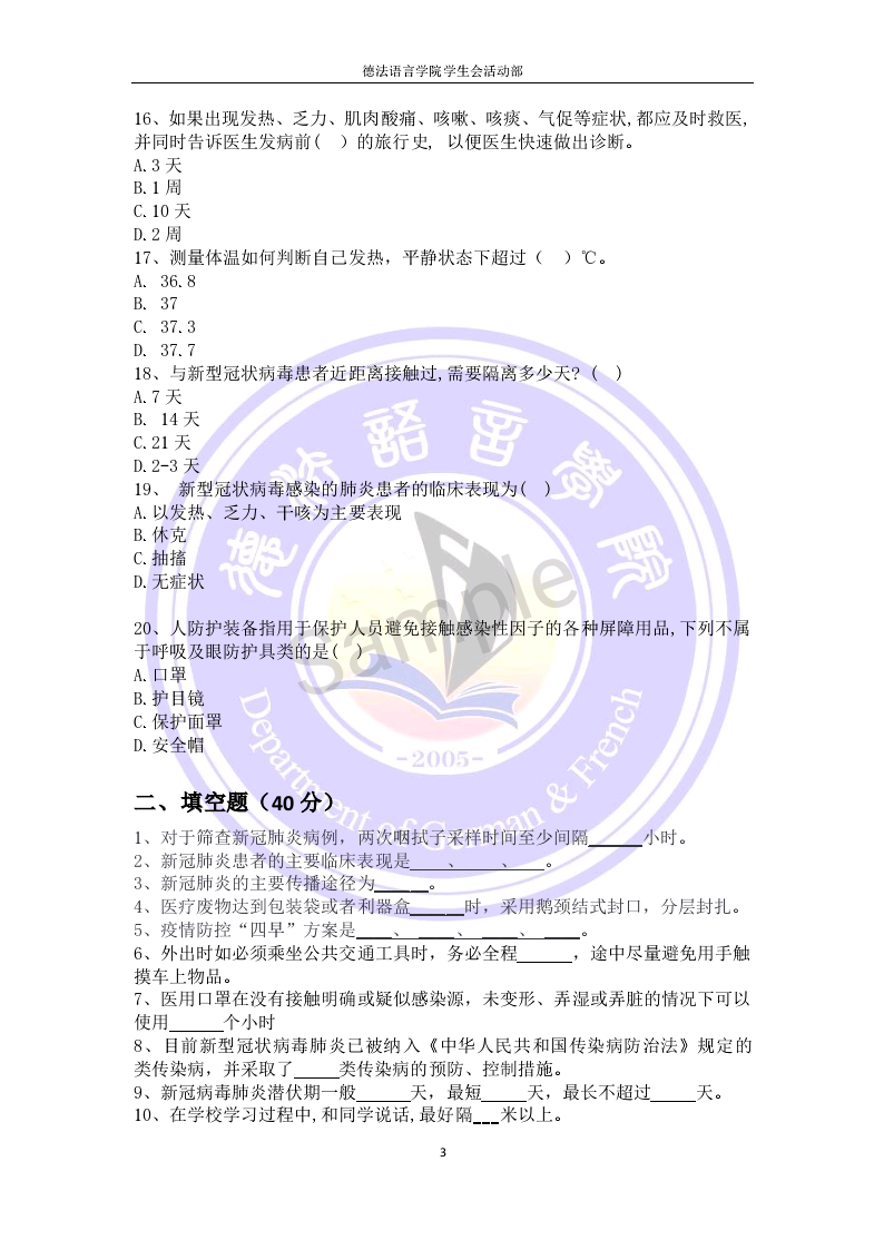 新型冠状病毒感染的肺炎疫情发生以来,全国上下众志成城,万众一心,采取了各种"硬核"措施防止疫情扩散蔓延,每一位在抗疫一线的工作人员都以责任和担当筑起了疫情防控堤坝。河北省疫情的出现,让正处于假期的我们正赶上疫情的爆发。作为当代大学生我们应该牢记各种防疫知识,时刻了解疫情变化,尽自己的努力共同抗战。为了向德法语言学院的同学们普及疫情知识,让德法语言学院的同学们能够更好地进行防疫工作,德法语言学院活动部于1月12日举办线上“新冠疫情知识竞赛”活动。