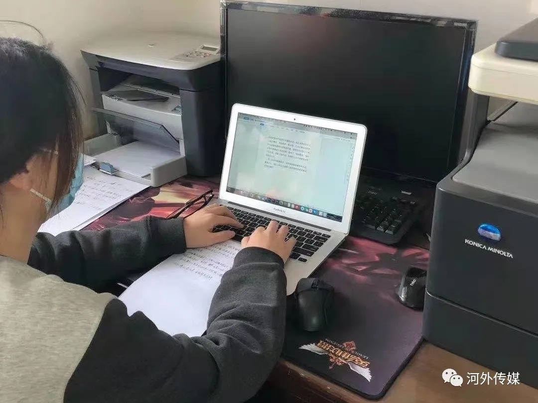 “我叫郭阿颖,是河北外国语学院传媒学院19播专班团支书,家住鹿泉铜冶镇。疫情突袭,由于一些原因我独自封闭在了老家西铜冶村子里,在家隔离。收到村委会的通知我去检测地点做了第一次核酸检测,村长叔叔知道我独自一人在家后,推荐我去村委会当志愿者,我立即答应下来。当天下午我就到村委会报道,安排我当文书,在学校时学到的新闻写作方面的知识,都切实运用到了工作当中。一开始写文章没头绪,每篇文章改一天一夜,甚至没心思吃饭,只想把稿子写好,把村里的工作宣传好,不能有差错和遗漏。当我的第一篇文章发表到网上的时候,我觉得我的辛苦没有白费,虽然是志愿者,但给村里做宣传,把村里的正能量宣传出去,是我的荣幸。这次宣传志愿者的工作让我看到了很多乐于奉献,冲锋在前的志愿者们,他们个个都是活雷锋、是榜样,志愿者工作教会我做一个有爱的人,把爱互相传递,把温暖传递下去。”
