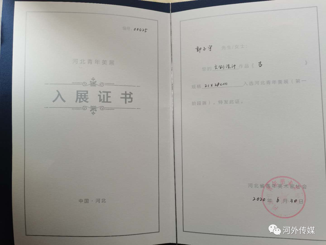 2020年6月文创设计作品《吉》荣获河北青年美展暨全国优秀美术家邀请展入展奖。