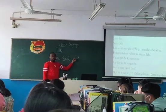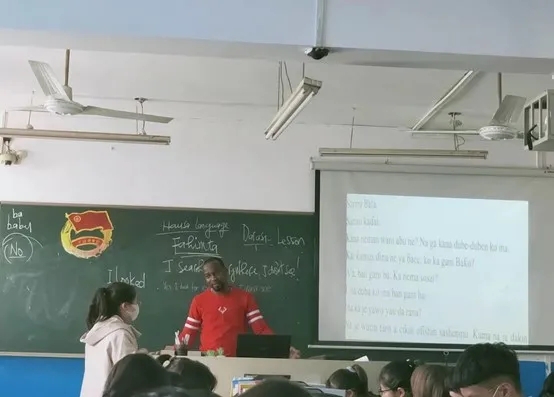走进Sani老师的课堂,读书声接连不断。他的课堂氛围总是严谨又不缺乏乐趣,总是带动学生们主动融入他的课堂,跟随他的思路。在和Sani老师交谈时,他总是会提到我们优秀的教师队伍以及活跃的班级氛围,他为同学们每天都在紧张的学习氛围里边感到非常骄傲,也越来越喜欢中国,越来越喜欢河北外国语学院。Sani老师从不会把同学们区别对待,他把同学们当成他的好朋友,和同学们讲述喀麦隆的历史、文化、饮食等种种国家内容。在同学们询问他问题时,他从不会有一点不耐烦,永远会仔细认真的讲解,还会适当给同学们进行知识补充,让每个同学都收获满满!希望我们的同学在Sani老师的带领下,可以学习到法语以及豪萨语,并能用其进行简单的对话。让我们一起期待吧!