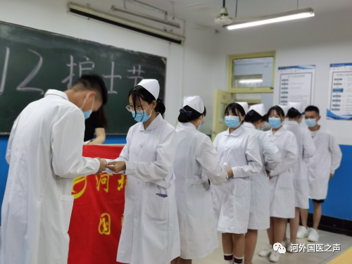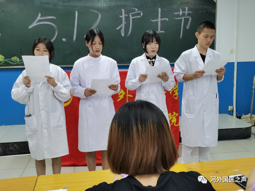 除此之外,同学们还聆听诗朗诵、欣赏歌曲表演,以此庆祝中国共产党成立100周年暨2021年5·12护士节,医学生们共同表示,要从自身做起,从服务每一位患者做起,把青春热血,挥洒在救死扶伤的光荣岗位上。