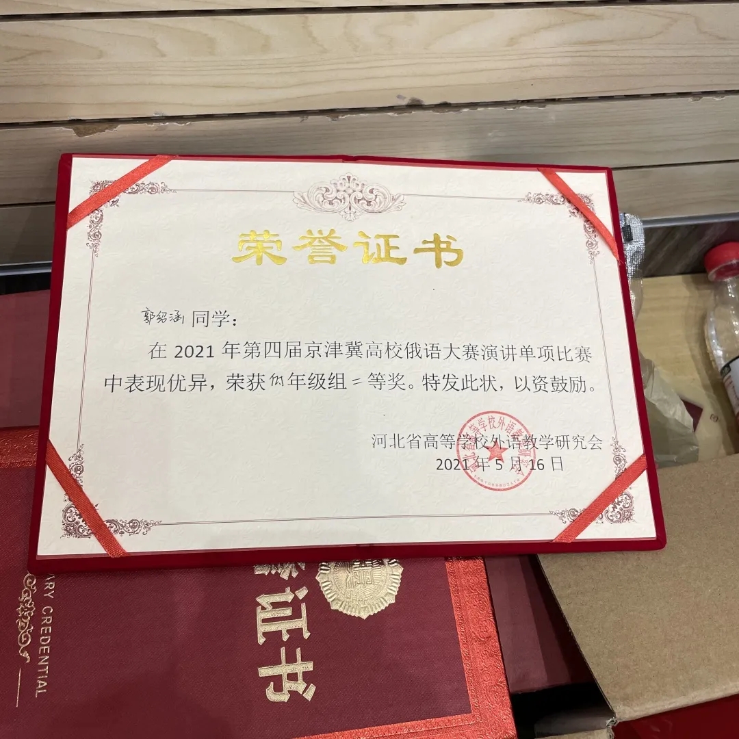 2021年5月16日,第四届京津冀高校俄语大赛如期举行。在此次大赛演讲单项比赛中欧亚语言学院19级俄本一班王金星同学获得低年级组一等奖、19级俄本一班郭绍涵同学获得低年级组二等奖、19级俄本一班吕思彤获得低年级组三等奖,18级俄本一班张可鑫、18级俄本二班周依依、18级俄本一班孙梦婷同学均获得高年级组三等奖。