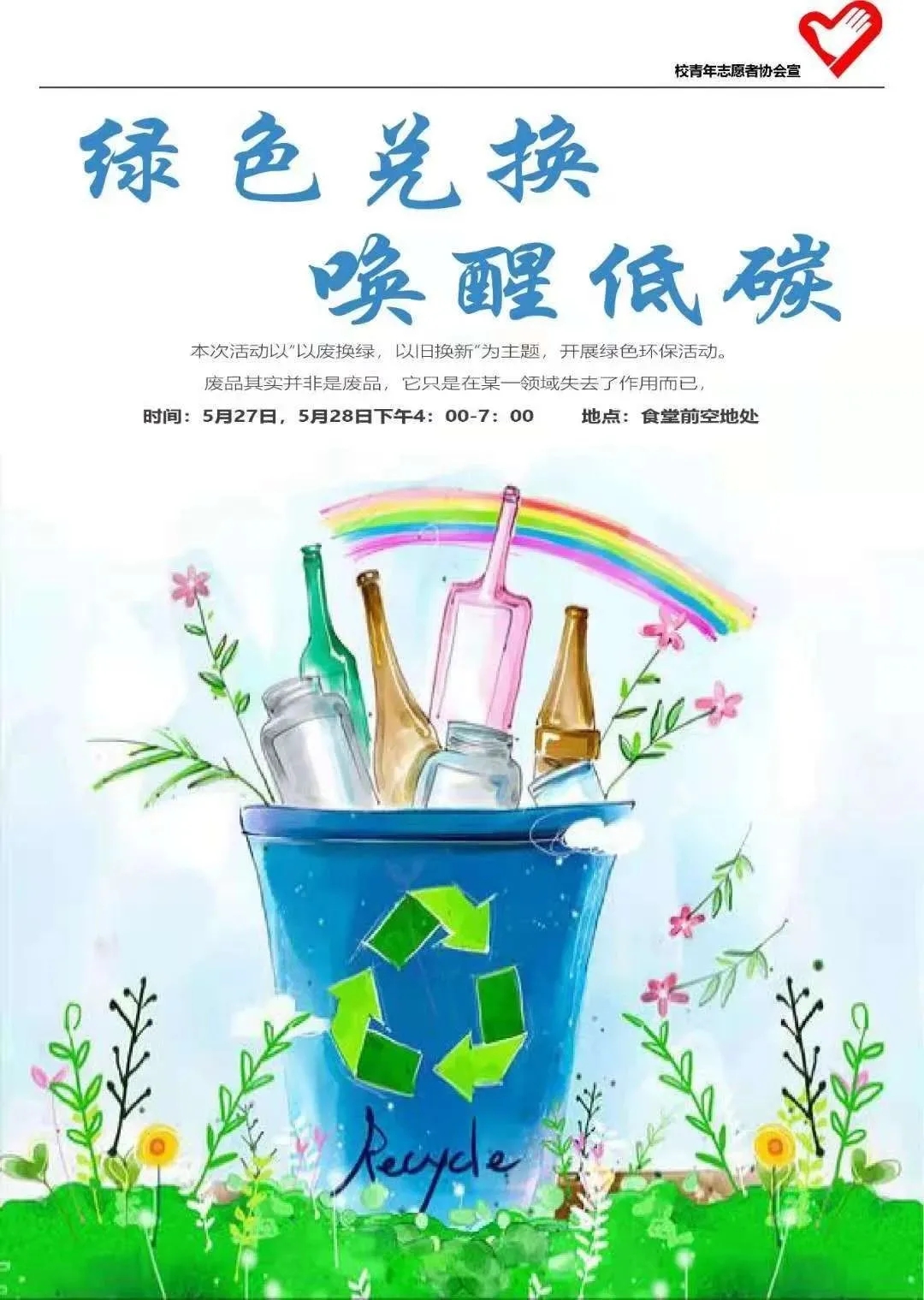 2021年5月27日欧亚语言学院青年志愿者协会为了提高大学生对于现有环境问题的意识,和河北外国语学院青年志愿者协会共同举办了以“绿色兑换,唤醒低碳”为主题的活动,动员全体成员参与环保运动中,通过绿色低碳生活改善地球的整体环境。