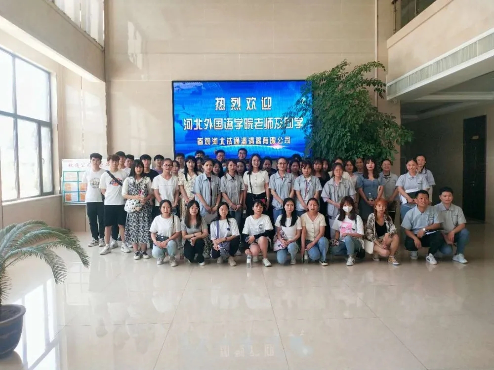 为了促进校企合作,产教融合教学理念,2021年6月18日,河北外国语学院国际商学院的18本科,19专科的部分学生在黄晓敏老师的带领下来到河北钛通滤清器有限公司开展产教融合实践基地走访活动。