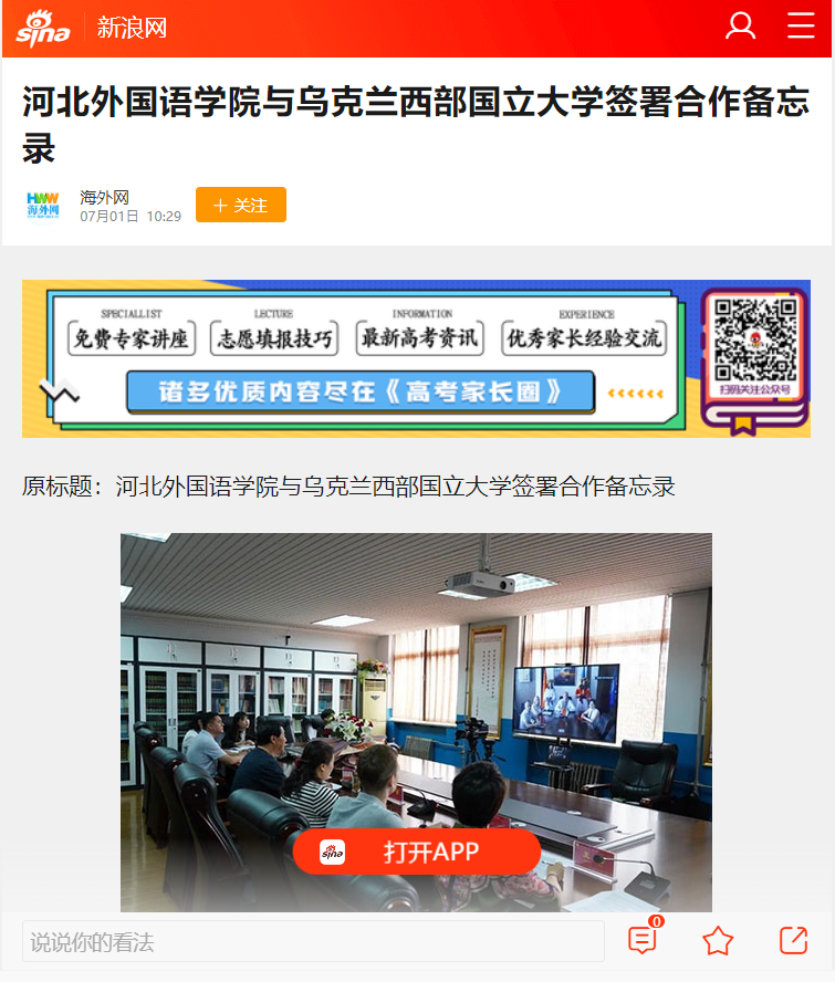 河北外国语学院与乌克兰西部国立大学签署合作备忘录