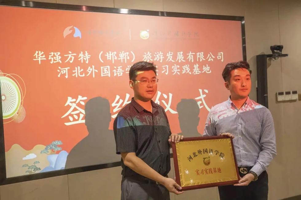 2021年7月6日,河北外国语学院与华强方特(邯郸)方特旅游发展有限公司校企合作签约授牌仪式在华强方特(邯郸)旅游发展有限公司成功举办。