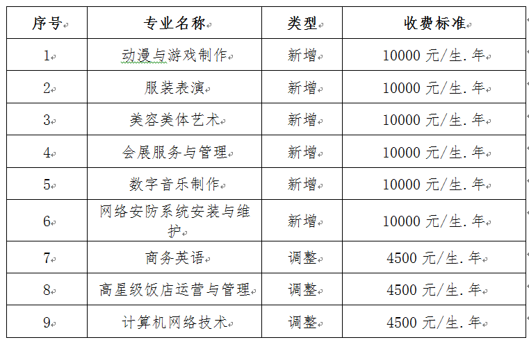依据河北省物价局、河北省教育厅、河北省人力资源和社会保障厅《关于进一步扩大民办学校收费自主权加强事中事后监管的通知》(冀价行费 55号)文件精神,我校2021年中专专业收费标准如下: