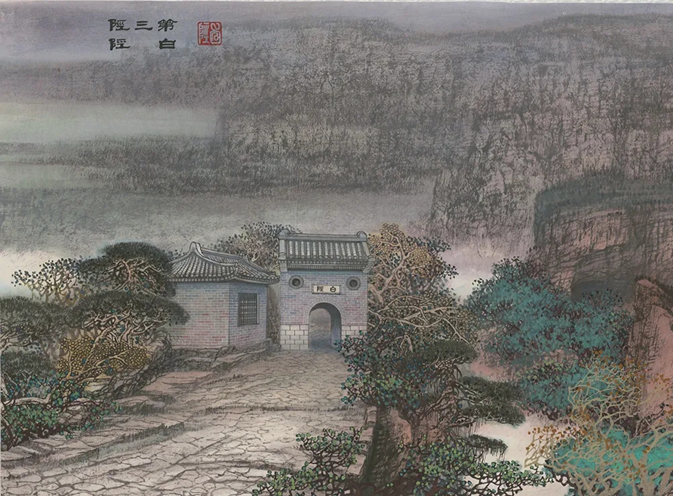 艺术家吴柳东的作品《太行山八陉图》所描绘的八陉(音xíng)分别为军都陉、蒲阴陉、飞狐陉、井陉、滏口陉、白陉、太行陉、轵关陉古称太行八陉,即古代晋冀豫三省穿越太行山相互往来的八条咽喉通道,是三省边界的重要军事关隘所在之地。从地理上看这幅《太行山八陉图》所描绘的太行山是延袤千里,百岭互连,千峰耸立,充满着万壑沟深的壮丽山川,而山西的许多条河流切穿太行山,自南而北有:沁河、丹河、漳河、滹沱河、唐河、桑干河等等,于是形成几条穿越太行山的峡谷。