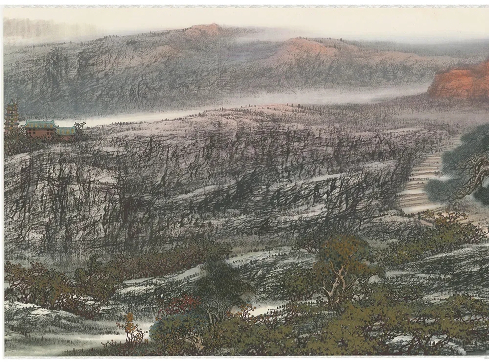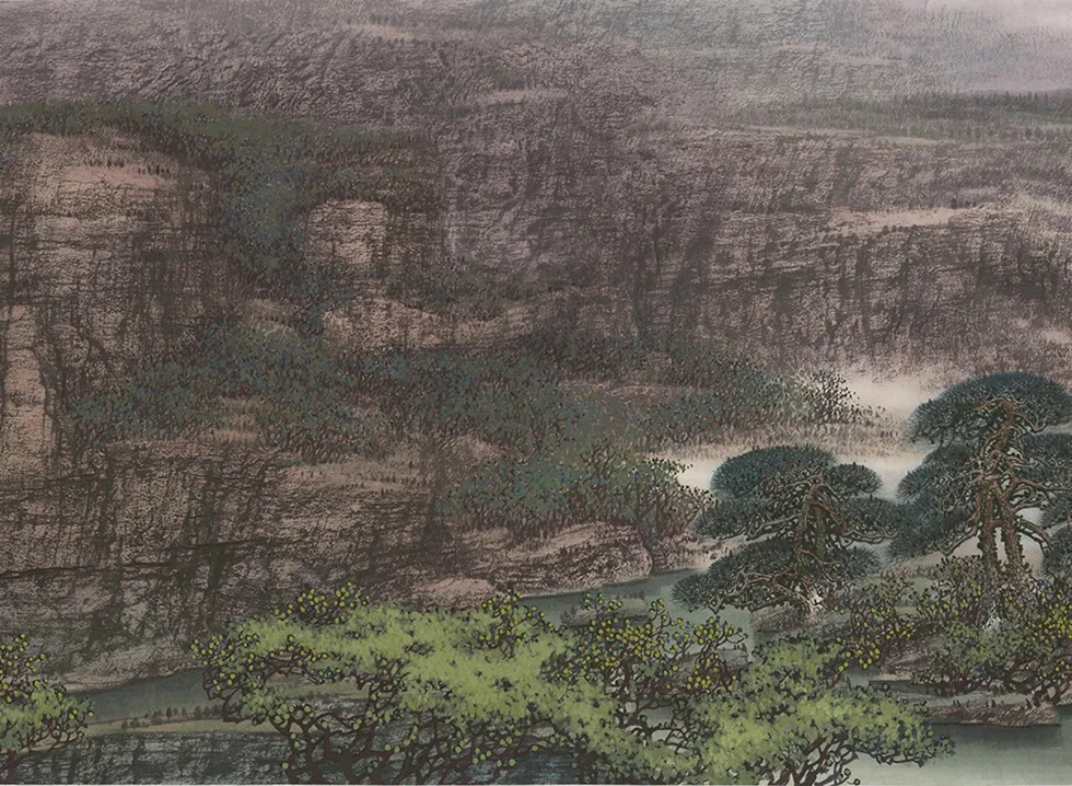 为了生动形象地表现大自然的山水,吴柳东一头钻进太行山腹地,当他走出深山的时候,将北方山岳险峻又不失壮美的质感、长松古树经风历雨的坚毅、飞泉流水日夜不息的灵动,犹如神助,跃然于纸上。