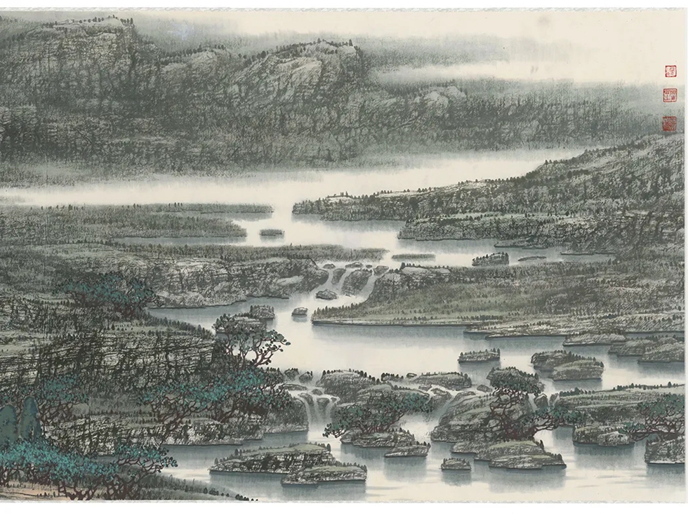 艺术家吴柳东创作的《太行山八陉图》用时一年之久,将800里雄伟壮丽的太行山风景浓缩于50米长卷上,体现了中华魂的宏伟壮观。