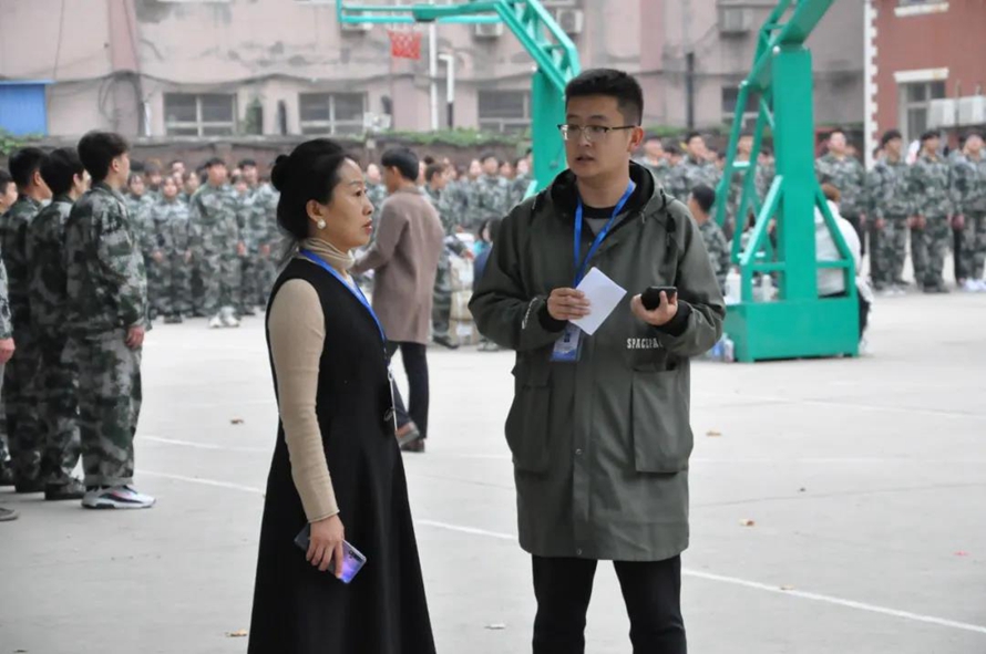 同时各学院院长、带军训辅导员也到各连队,与教官、同学们进行沟通交流,及时关注参训同学的思想动态与训练情况,鼓舞军训士气,并进行安全案例分享。