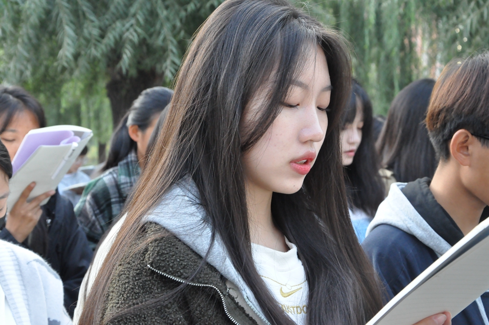 你瞧,同学们一个个全神贯注地看笔记、声音嘹亮地读外语,他们的认真劲儿简直太赞了!