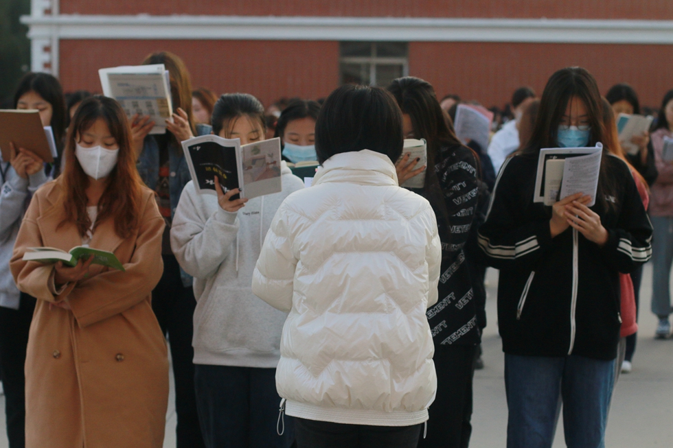 新学期新气象,新生活新追求。一大早,伴着冉冉升起的东方红日,河北外国语学院20000余名师生开始了新一日的西点学习。他们拿着西点教官为他们准备的西点内容,在西点军营中,放开嗓子,用洪亮的外语嗓音,开始外语学温习与学习。