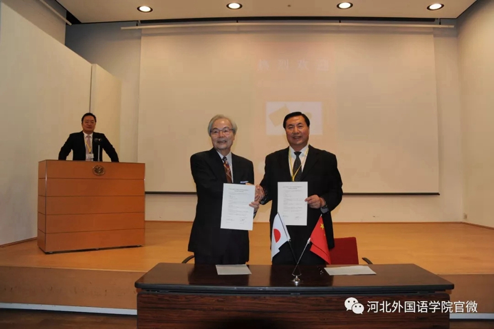 2021年10月,河北外国语学院与日本大手前大学签署具体合作协议。河北外国语学院孙建忠校长与大手前大学鸟越皓之校长分别在学校相关领导的见证下正式在协议上签字。河北外国语学院再添国际合作新伙伴。
