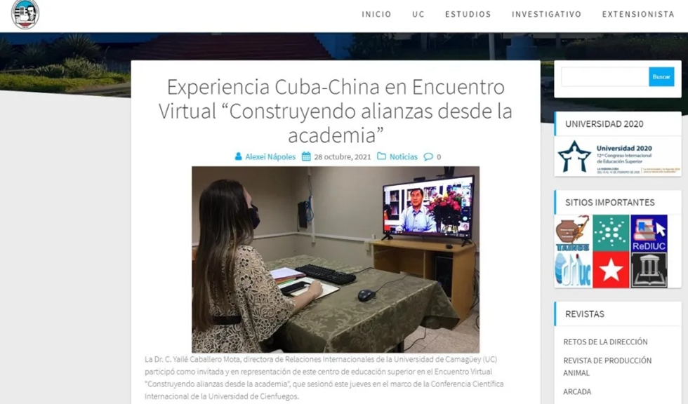 2021年10月28日晚上9点,应古巴高等教育部和西恩富戈斯大学邀请,河北外国语学院董事长、校长孙建忠院士参加每两年举办一届的国际大学校长论坛,来自美国、加拿大、法国、德国、比利时、墨西哥、阿根廷、秘鲁、厄瓜多尔等近20个国家的50多位大学校长参会,论坛以“在发展科学中建立联盟”为主题展开交流。