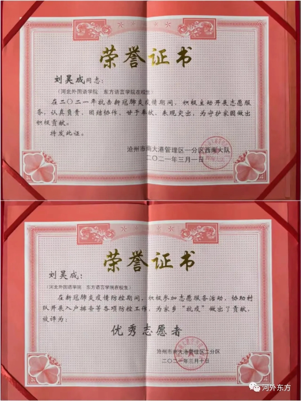 刘昊成,来自东方语言学院18级朝鲜语本科班,是国旗护卫队的一名队员,也是优秀共青团员,中共党员重点培养对象,在学校积极参加各项活动,获得诸多荣誉。为学校捐赠两台人脸识别测温仪。