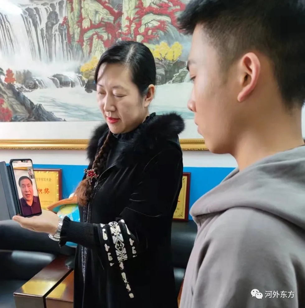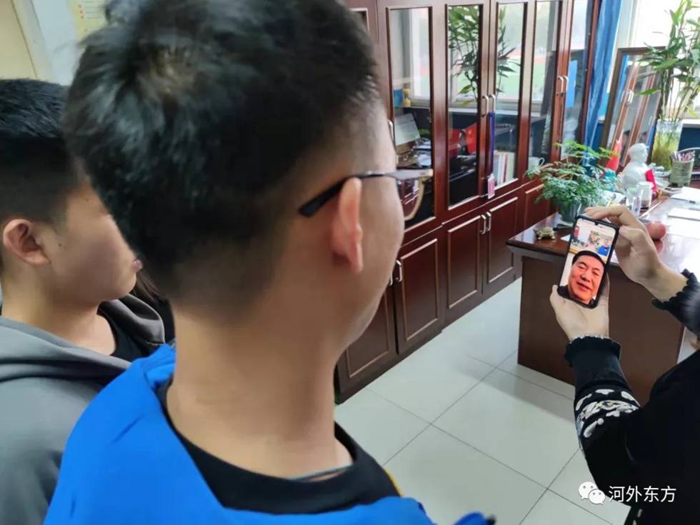 陈乐音副校长对刘昊成进行了表扬,并嘱托吴泽林同学,要更加努力的去学习,锻炼自己的组织能力、领导能力。随后陈校长联系了正在新校区工作的孙校长与三位同学进行视频对话。