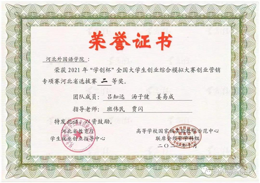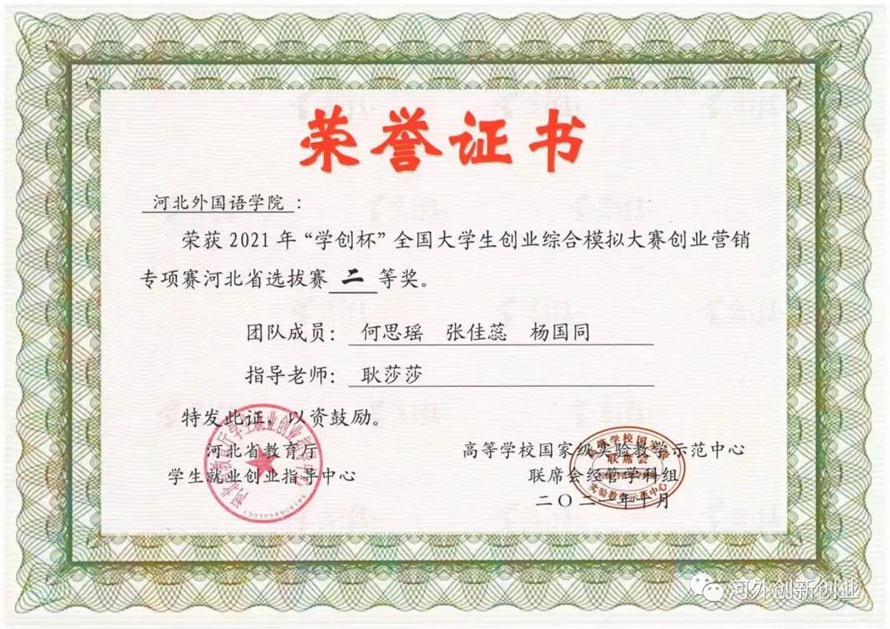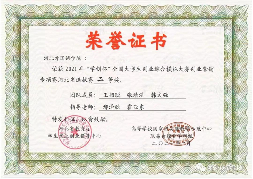 历经三个月的实践模拟和选拔,九支团队脱颖而出,代表河北外国语学院参加河北省省赛,并荣获省级二等奖。