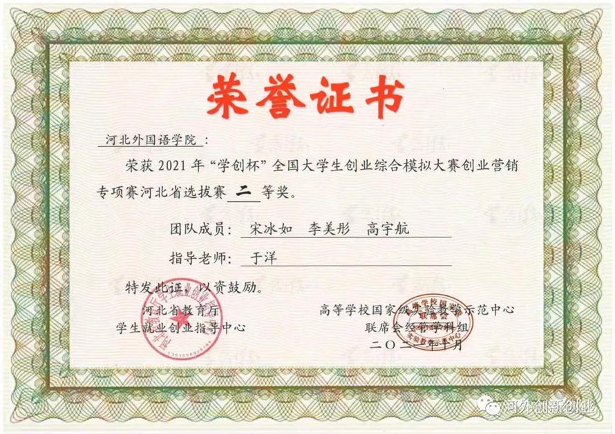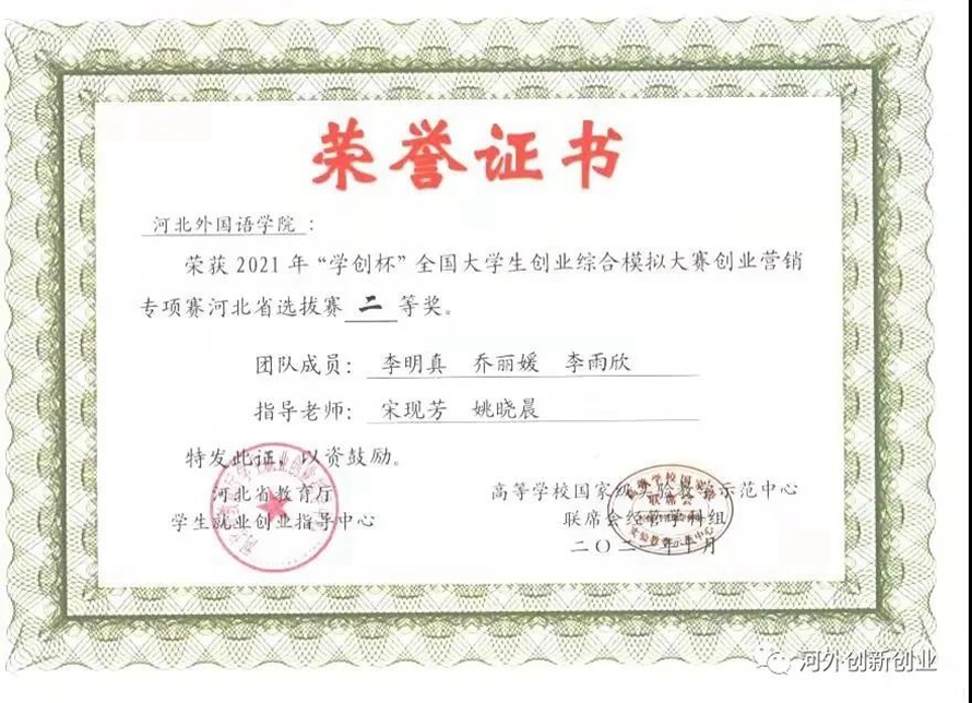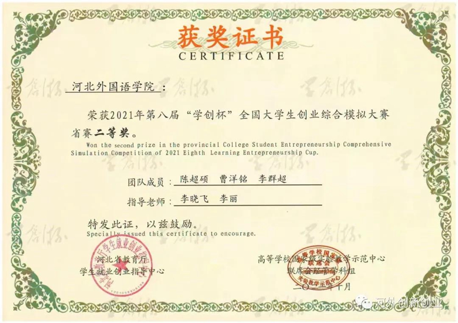 河北外国语学院九支团队成功突围获得省级荣誉,四支队伍获得主体赛省级二等奖,五支队伍获得专项赛省级二等奖。