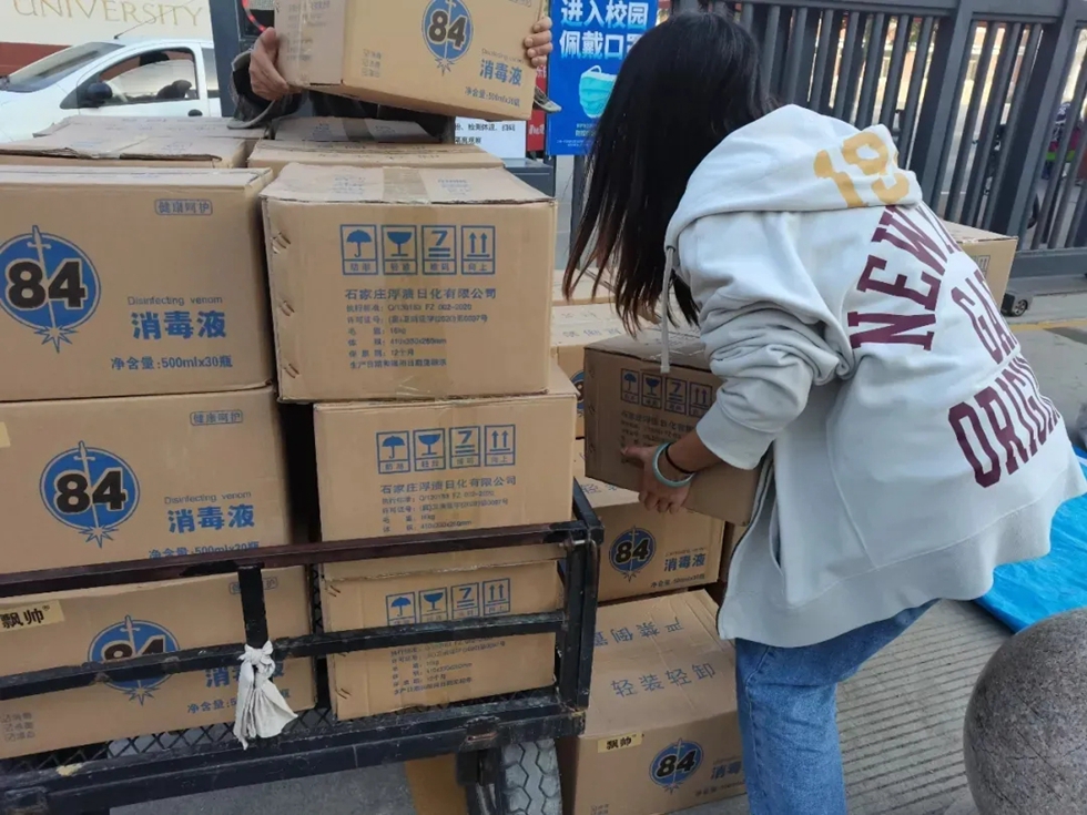 据悉,自学校封锁以来,很多德法学子高度关注学院防疫措施,同学们自发联系到学院并表示将尽己所能为学院防疫工作做最大限度的支持。同学们选择通过网购等不接触外界的方式购买,物资到校后及时上报学院并安置妥当,德法语言学院吴院长代表德法全体教师和学生向捐赠物资的同学们表示感激,并第一时间联系学校防疫负责人员,对捐赠的物资进行登记入库处理,对捐赠物资的同学们保证将不负他们的一片热枕。
