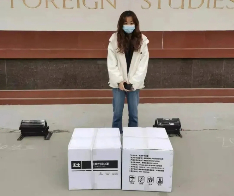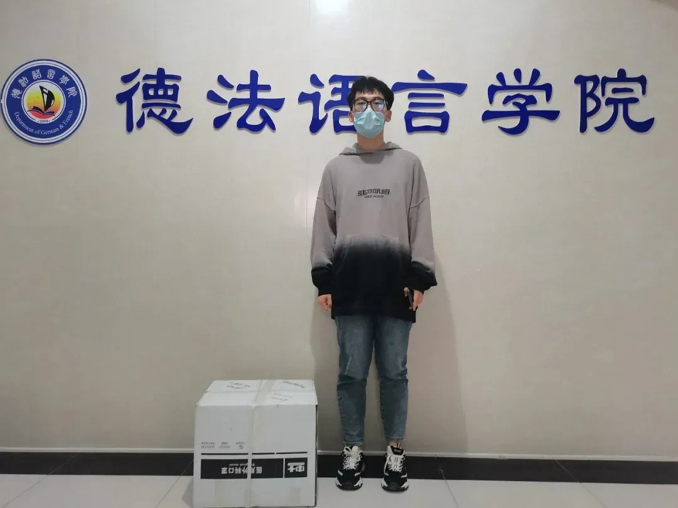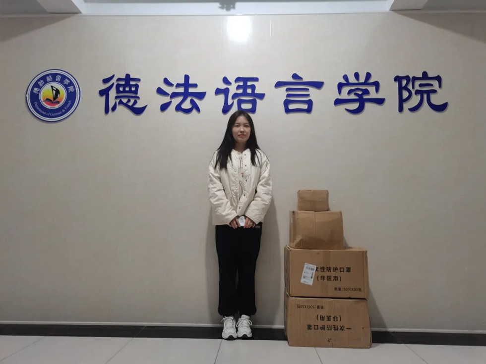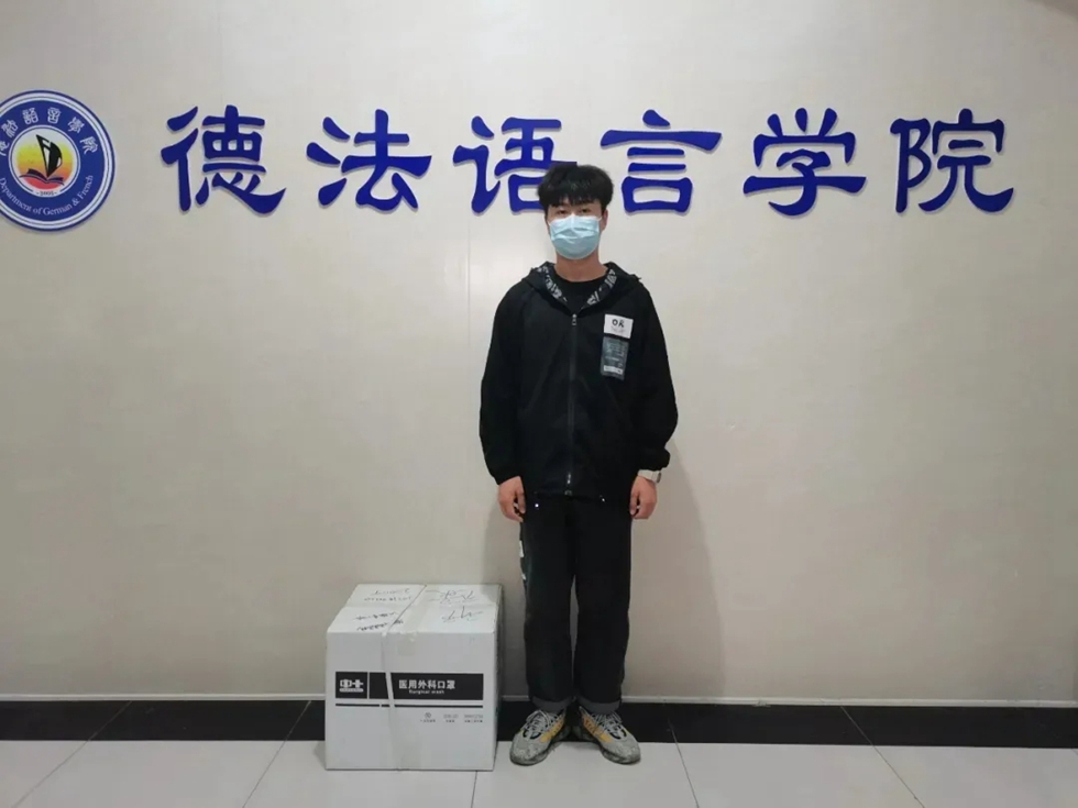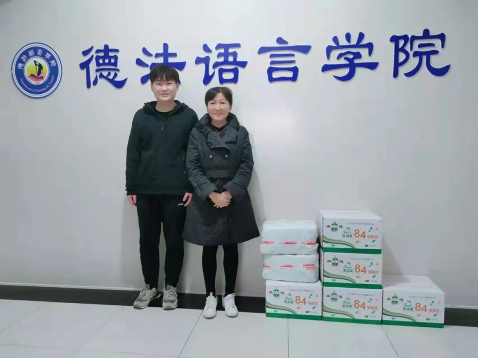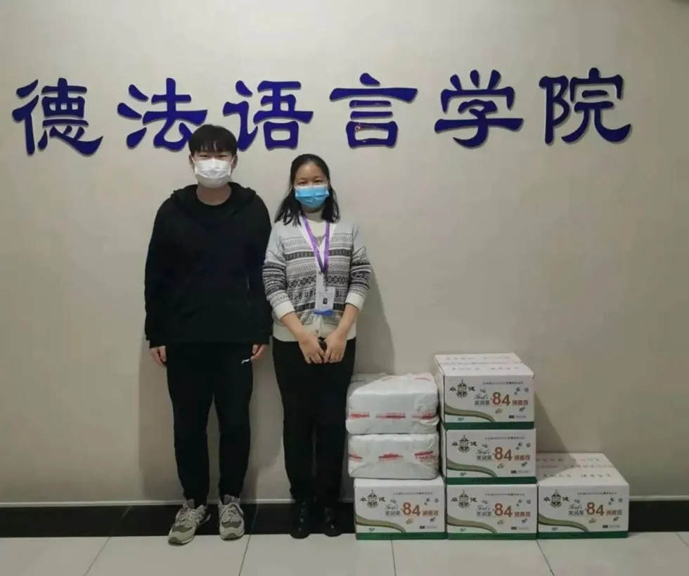 面对近期不断反复的疫情,德法语言学院许多学生都表现出无私奉献和责任担当,自发为学院送来防疫物资,助力打赢这场防疫“阻击战”,据统计,自新学期开始至11月8日,德法学子共捐赠三万余只口罩、两千六百余瓶消毒水、六千副手套、三箱洗手液和一台红外测温仪。