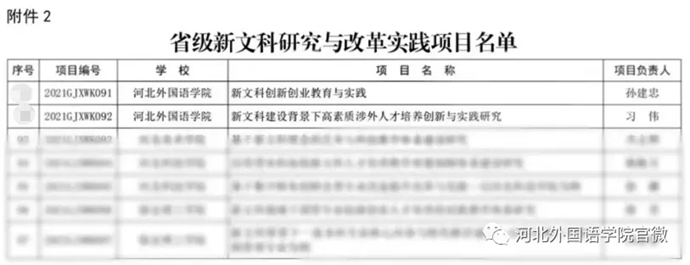 11月17日,河北省教育厅发布《关于公布首批国家级和省级新文科研究与改革实践项目的通知》,我校两个新文科研究与改革实践项目获批为省级新文科研究与改革实践项目,分别为孙建忠院士负责的《新文科创新创业教育与实践》、习伟校长负责的《新文科建设背景下高素质涉外人才培养创新与实践研究》。