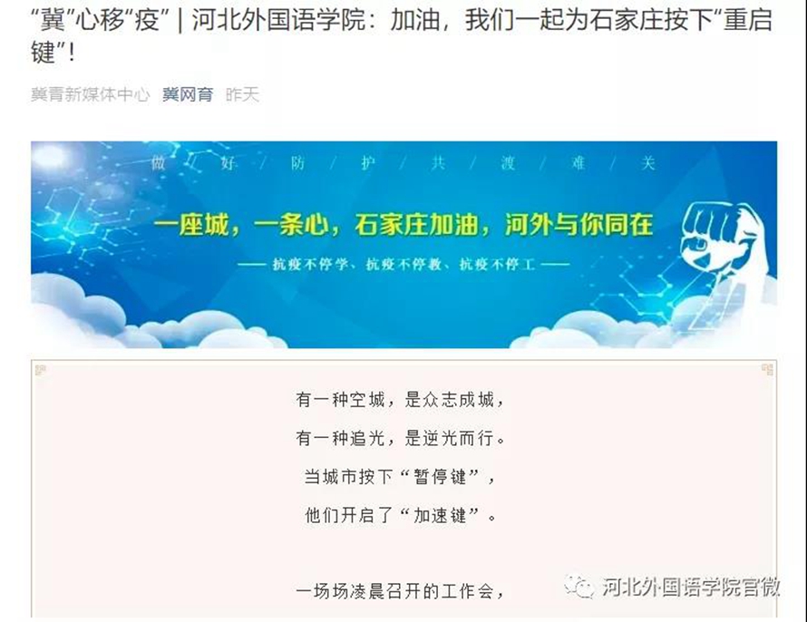 河北外国语学院师生抗疫,被各大媒体报道30余次